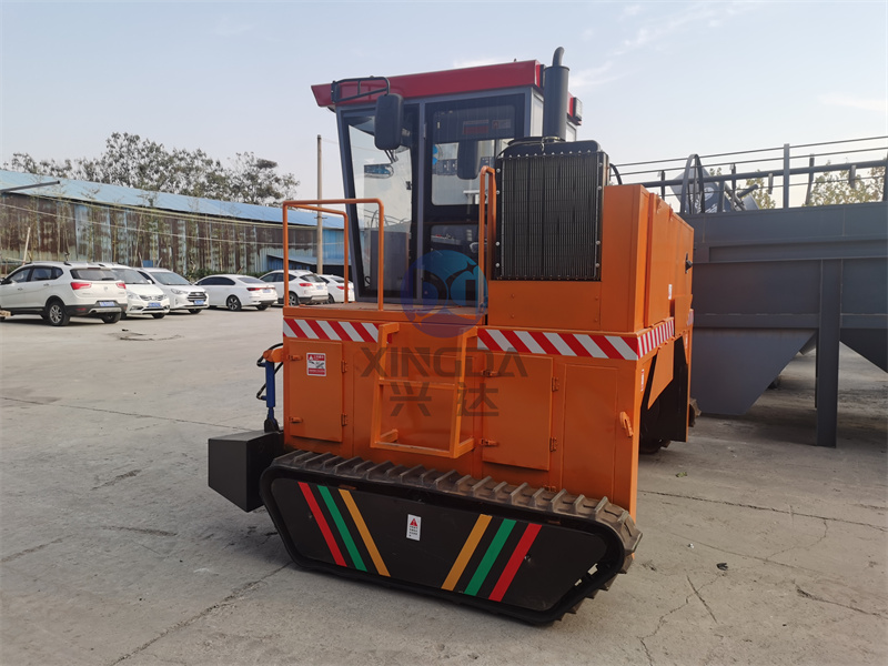 年产万吨生产线设备履带翻抛机是兴达整套年产万吨有机肥生产线中的一款有机肥翻堆发酵设备。在有机肥生产线中担当起到翻抛物料的作用。 履带式翻堆机水分大的物料原地不会打滑爬窝现象终身不会更换轮胎拉杆操作原地转弯调头淘汰了方向盘式原地无法调头的烦恼节省场地人工柴油国内新型产品。履带翻堆机属于地面堆放发