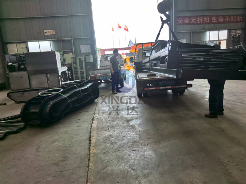 一车装满有机肥设备的车辆准备从兴达出发开往泸州: 有机肥大倾角皮带机是一种专门用于运输有机肥料的机械设备,其设计能够应对较大的倾斜角度。这种设备通常由高强度、耐腐蚀的材料制成,以确保在处理有机肥料时的耐用性和可靠性。大倾角皮带机配备有防滑和防偏装置,保证了物料在传输过程中的稳定性和安全性。