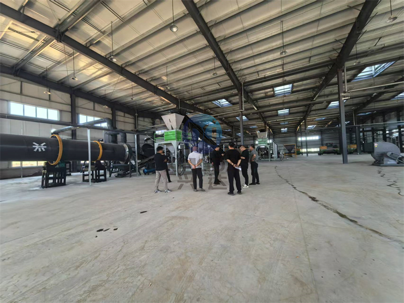 衢州现场:完成安装的年产5万吨颗粒有机肥生产线试机现场