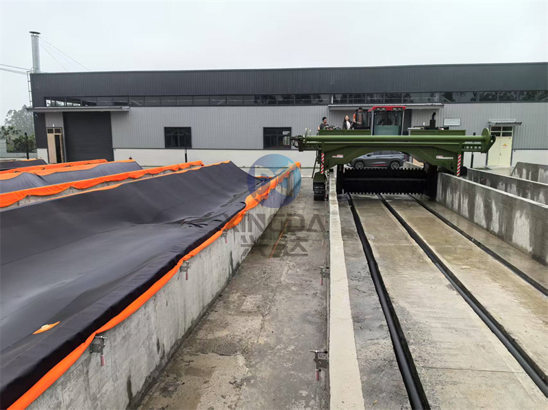 使用现场:完成安装后5米宽的液压履带覆膜翻抛机正在试机
