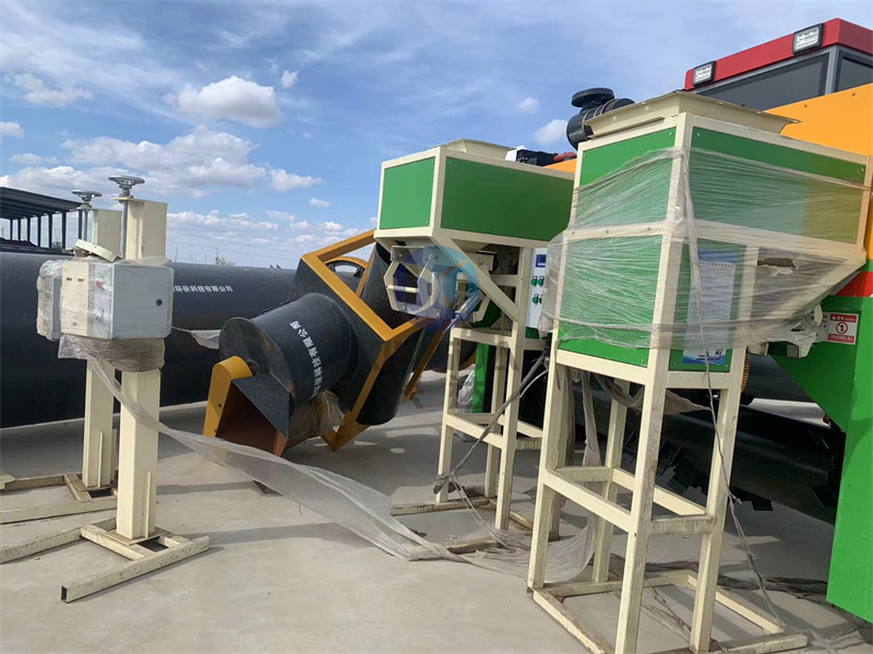 甘肃客户定制的有机肥防尘设备正在装车进行中