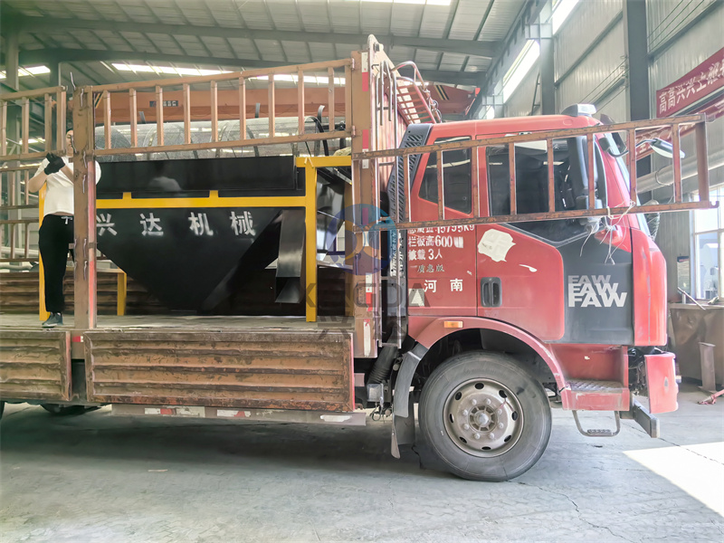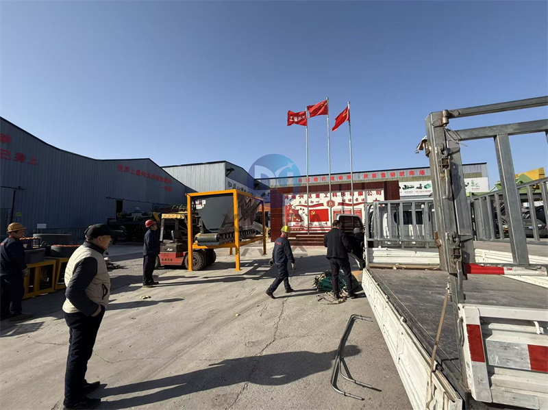 发货现场:有机肥设备厂区车间正在对邢台有机肥铲车料仓设备进行装车