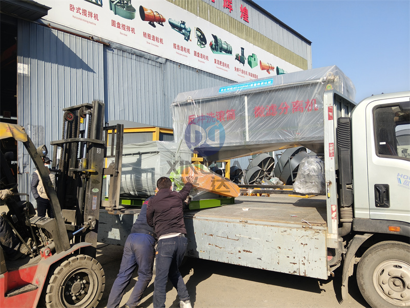 两台设备一起装车:畜禽粪便脱水机与有机肥卧式搅拌机一起装车准备前往南阳