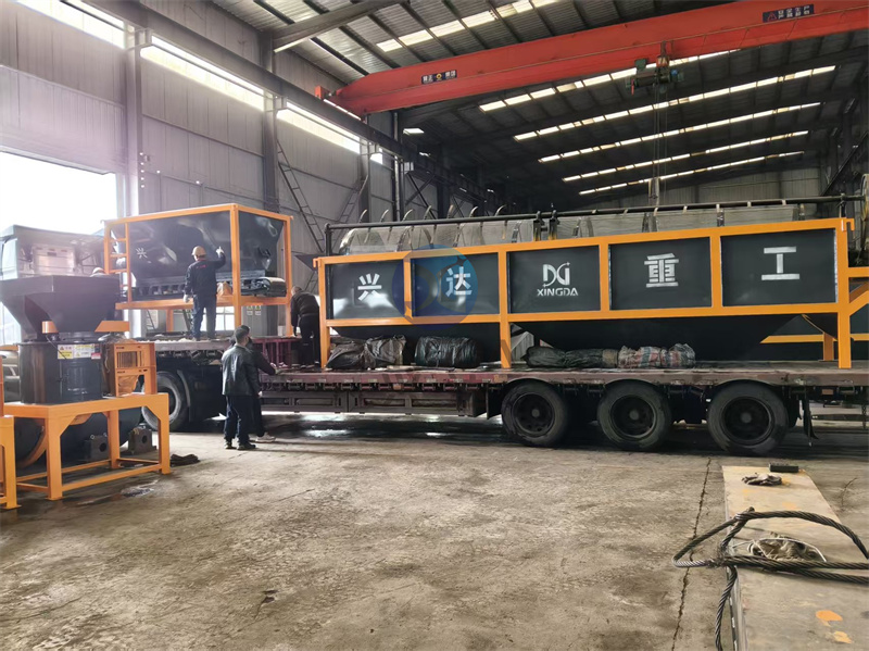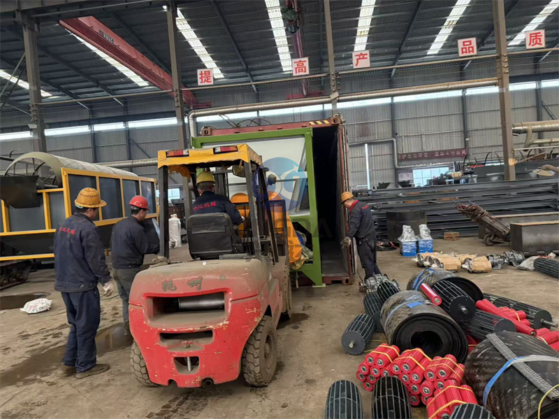 第二车发往国际的有机肥设备筛分设备、包装设备正在装箱